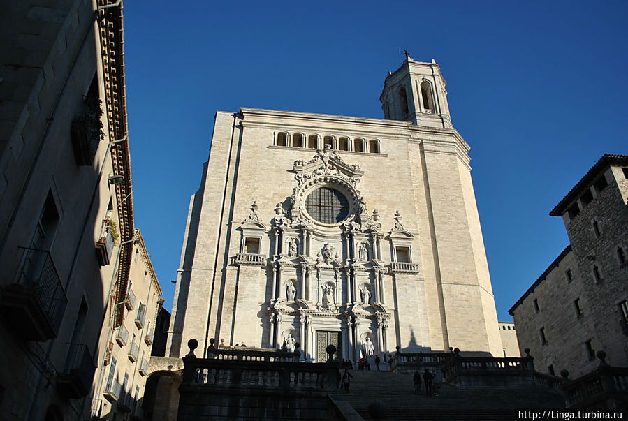 Думаю, ни один экскурсовод не откажет себе в удовольствии – поводив туристов немного по узким улочкам Жироны, вывести их к основанию широкой 90-ступенчатой лестницы, над которой будто парит громада Кафедрального собора. От этого зрелища захватывает дух!