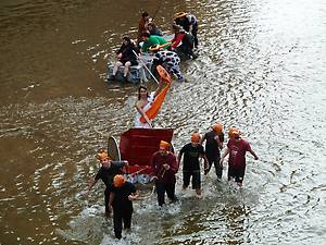 Как прекрасно жители Испании празднуют свои праздники, пусть даже не национальные или религиозные, а "обычные" местные. Например, в субботу 4 ноября, в Жироне устроили городской праздник. В этот день, в городе продавали свою продукцию местные гастрономы, а по мелкой, в городском течении речке Оньяр ( глубина до 1 метра) был устроен необычный заплыв. Задача для участников заплыва заключалась в трех условиях: