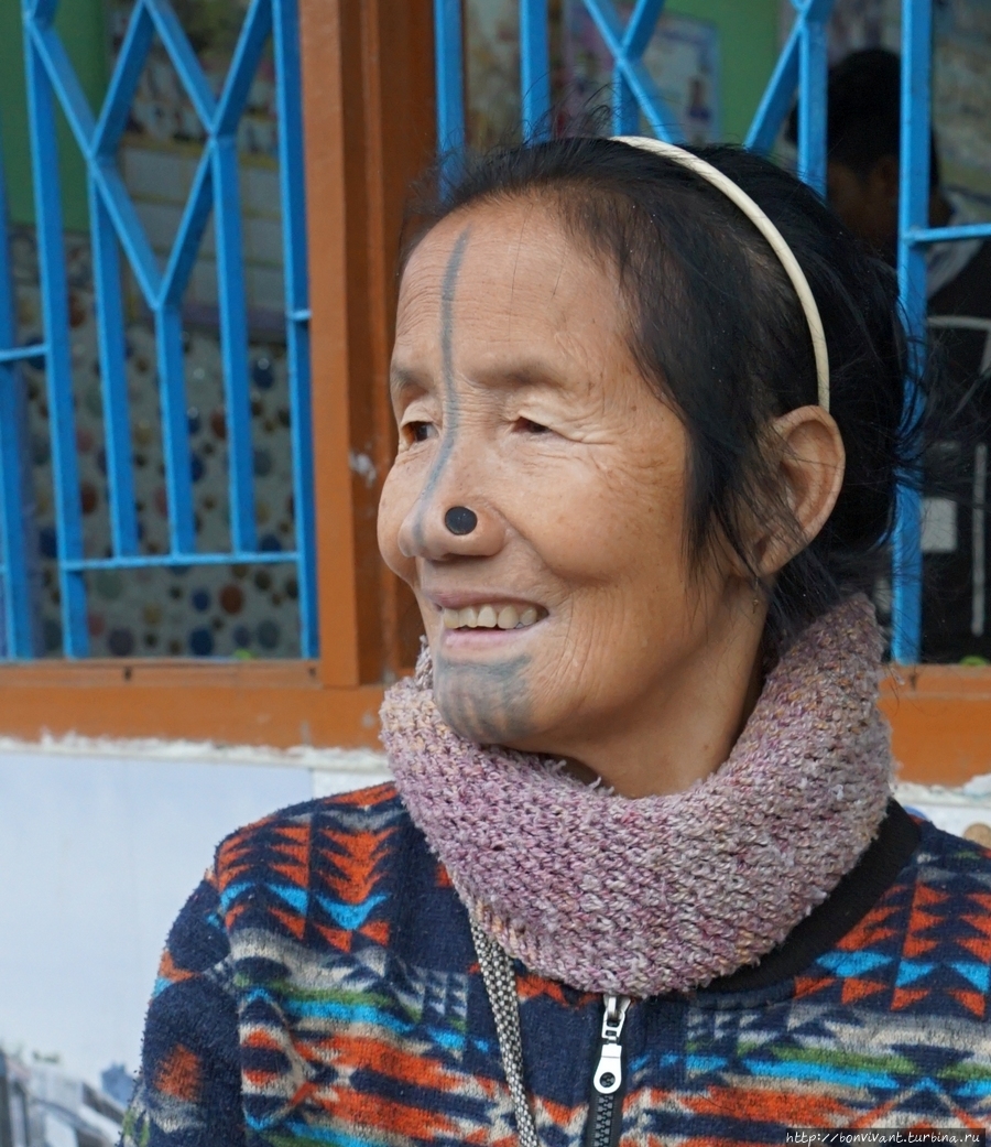 Внешне апатанцы похожи на монголов и тибетцев, а не на индусов, но самый большой интерес вызывают их старики – уж больно колоритно они украшены. Женщины имеют татуировки на лицах и yaping hulo – пробки из ротанга, вставленные в крылья носа. Мужчинам нанесены Т-образные татуировки на подбородок, закручена своеобразная прическа. Конечно, современные апатанцы тату и носовые пробки не носят, тем интереснее застать эту угасающую традицию у стариков племени. Зачем они это делали? Основная версия (как и в других местах) – чтобы женщин племени не воровали мужчины из других племен.