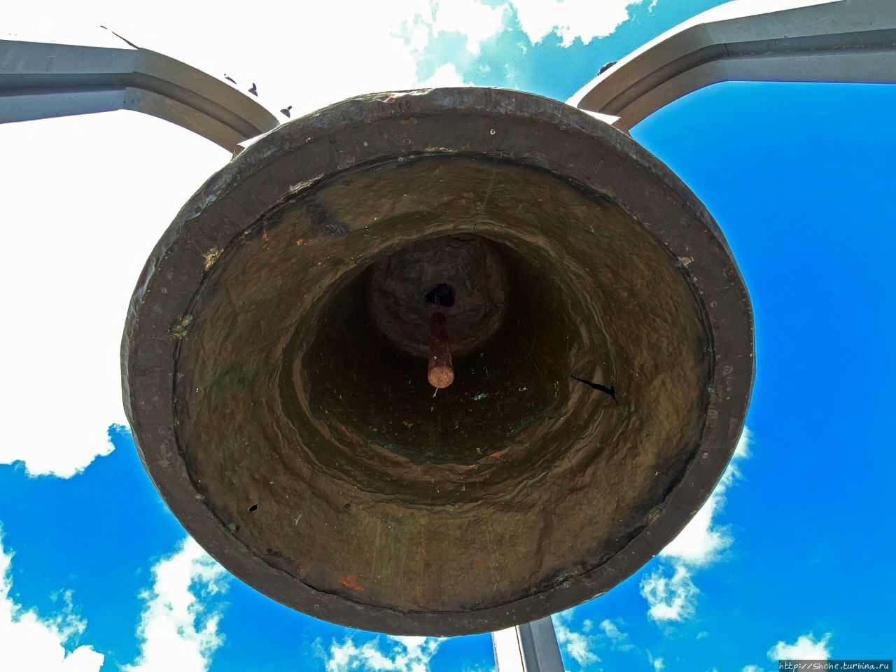 Сейчас большой железный колокол, как символ города, установлен на месте, где была та самая крепость, возле единственной сохранившейся стены.