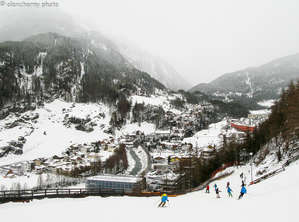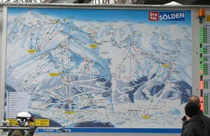 Итак, Зёльден. Маленький городок в Австрийских Альпах, или даже деревня, но обустроенная и комфортабельная. Куча зон катания, и спусков на разное мастерство: от легких голубых для начинающих до черных. Градация такая: голубые- для новичков, красные- для умелых, черные -для экспертов. Честно говоря тамошние черные больше похожи на серьезные красные. Еще есть много зон для так называемого "внетрассового" катания — по пухлячку, фрирайду между камней, но это уже для юных фанатов.