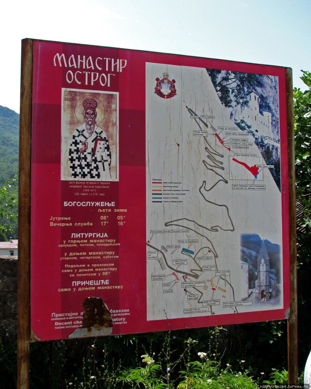 Я не стал исключением, и в свою первую же поездку в Черногорию летом 2008 года со всеми своим членами семьи отправился на экскурсию в Острог. Монастырь состоит из двух частей: верхней и нижней. Автобус подъезжает к нижнему комплексу, но интересует всех белая церковь, виднеющаяся вдали на скале...