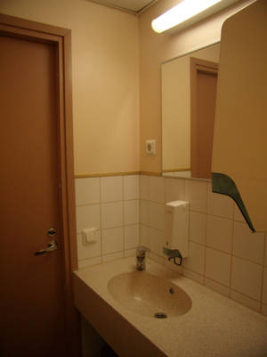 В комнате есть холодильник, шкаф для одежды, в общем-то отсутствием или недостатком мебели место не грешит. Порадовал интерьер хостела: яркие цвета, занавески Marimekko! Идеальные WC!